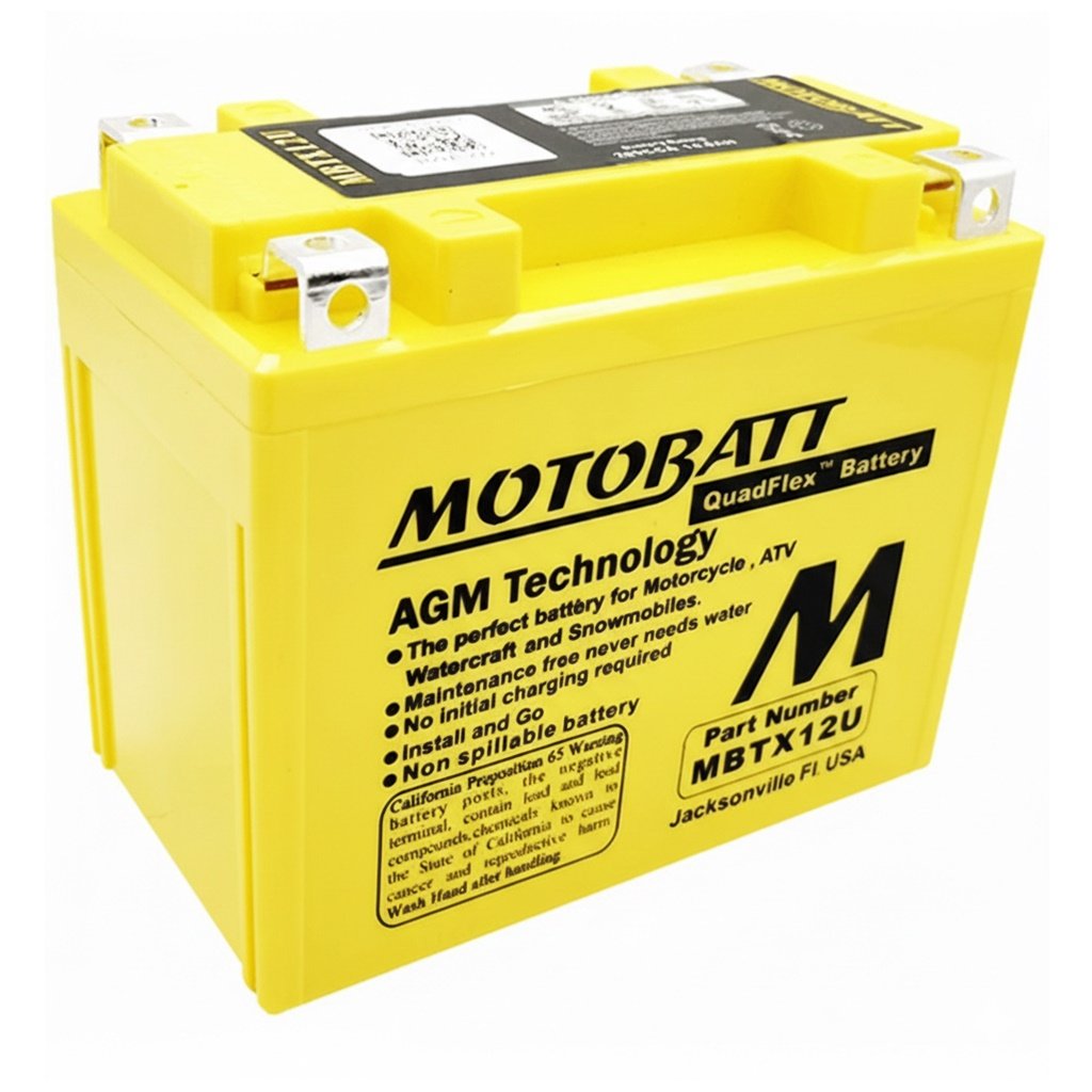 La Motobatt MBTX12U es una batería AGM sellada y activada de alto rendimiento, diseñada para motocicletas que requieren mayor potencia de arranque, confiabilidad eléctrica y larga vida útil.