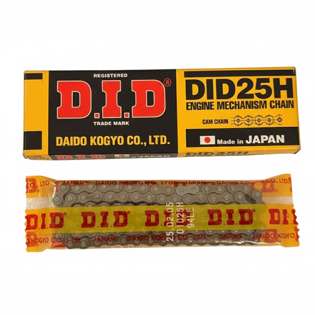 La cadena DID 25H se destaca por su alta resistencia al desgaste, estiramiento controlado y funcionamiento uniforme a lo largo del tiempo.