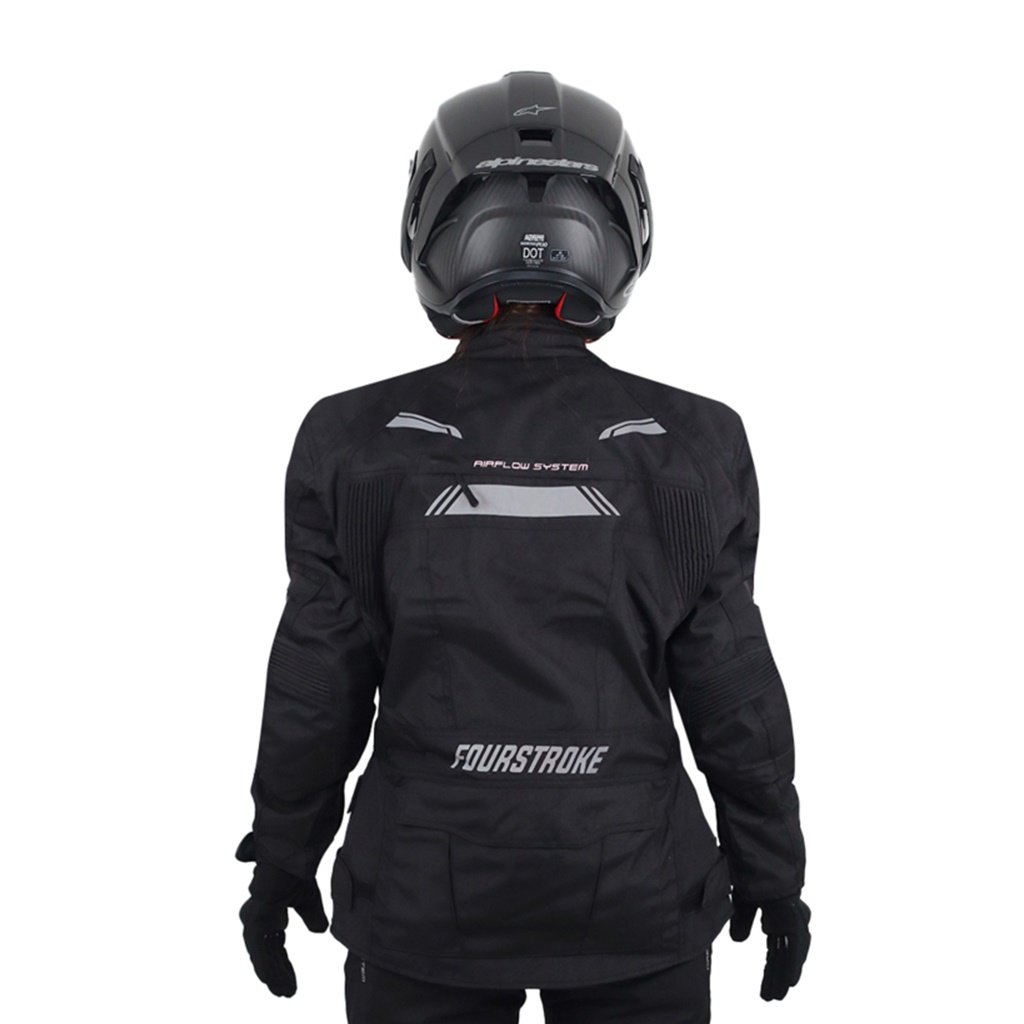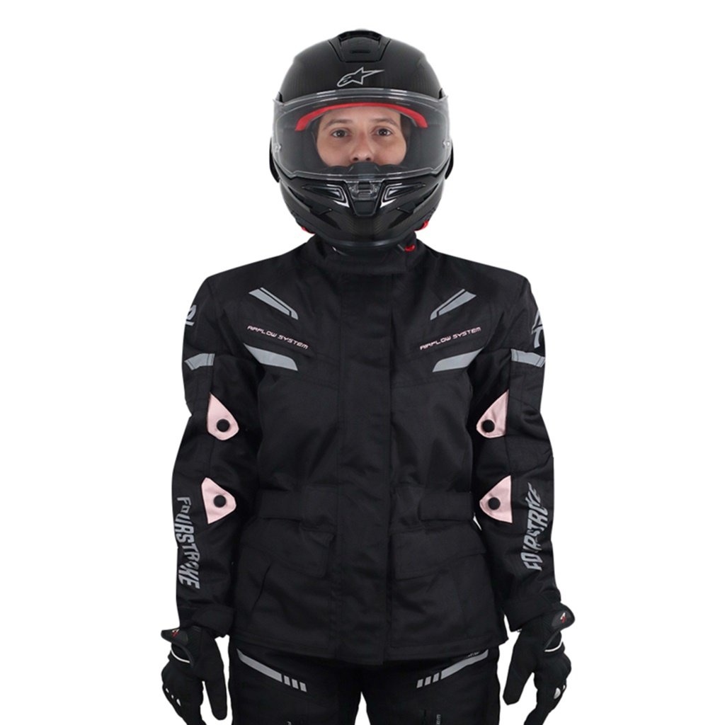 Campera para Motos Fourstroke All Weather Dama Negra y Rosada: protección, confort y versatilidad en cualquier clima.