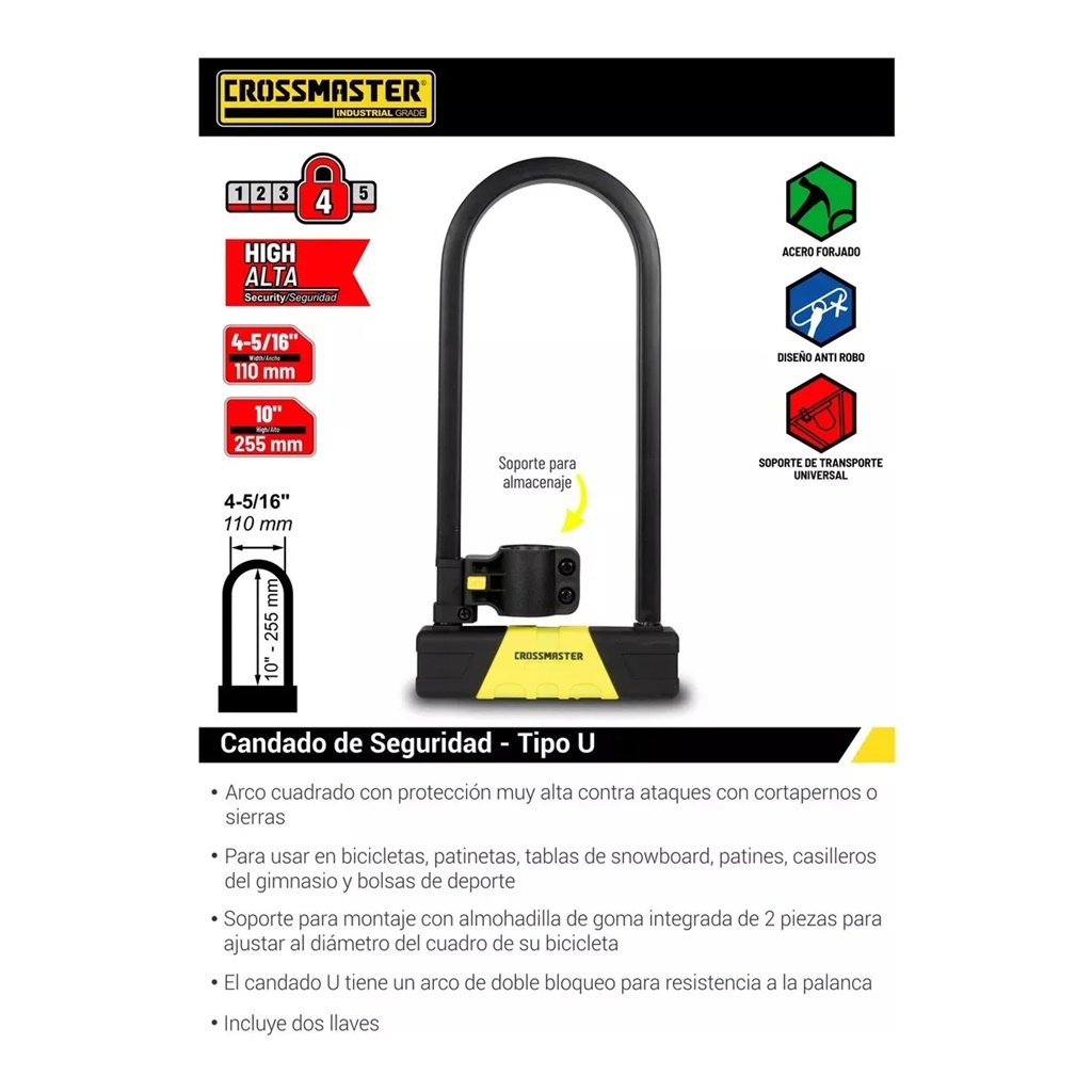 Este candado tipo U está diseñado para ofrecer protección superior, ideal para asegurar tu moto. Su construcción reforzada y diseño de doble bloqueo garantizan resistencia a cortes, palancas y ataques comunes.
