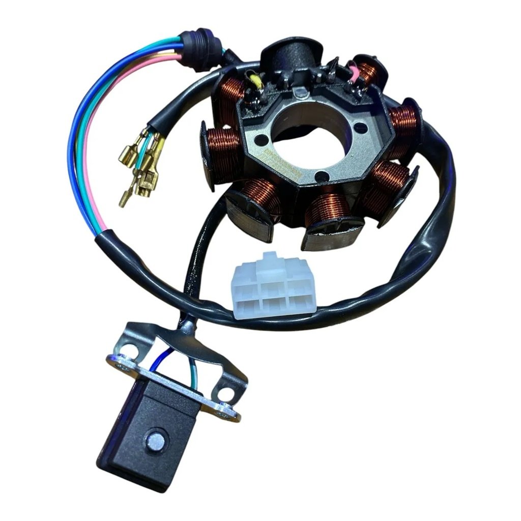 Asegurá el correcto funcionamiento del sistema eléctrico de tu moto con el Estator para Zanella RX 150 de 8 campos, diseñado para ofrecer una generación de energía eficiente y constante. Es una pieza clave para el correcto desempeño del encendido, la carga de la batería y el funcionamiento general de los componentes eléctricos.