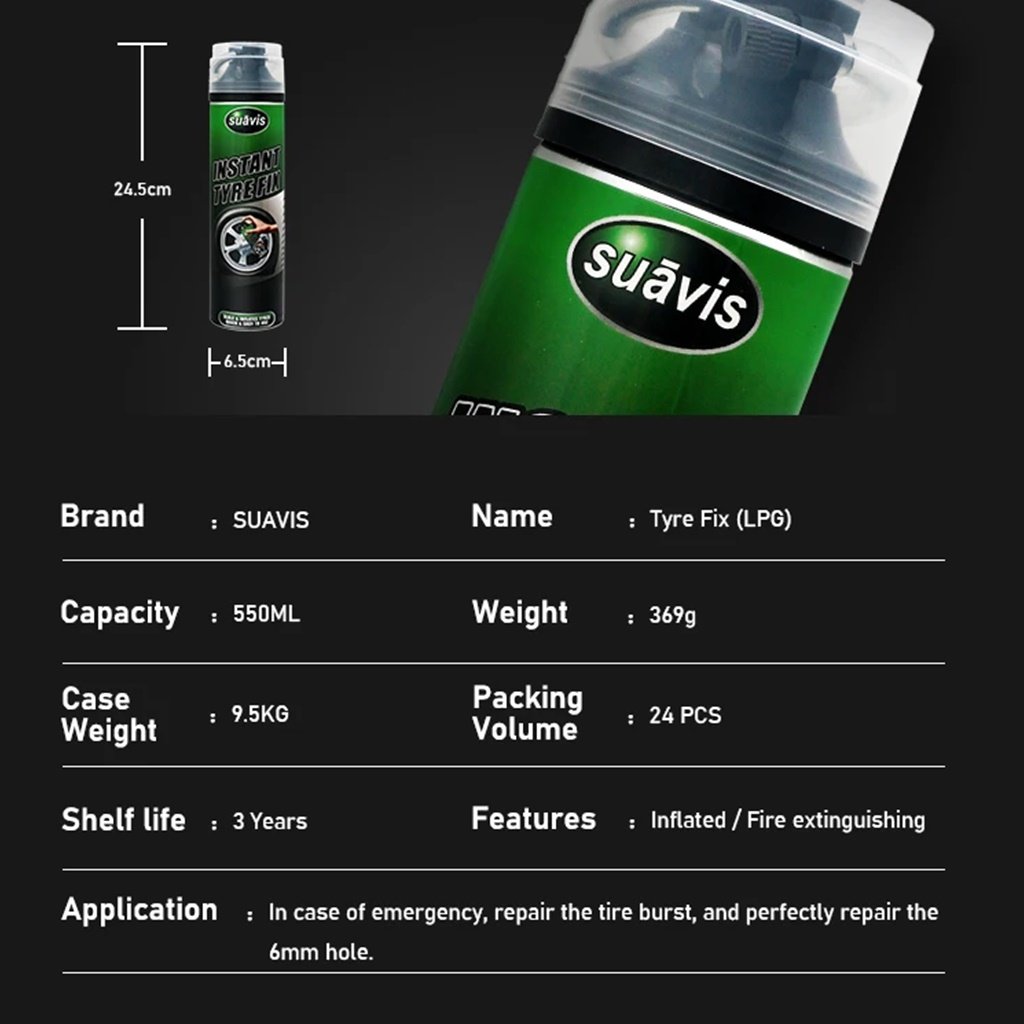 El Reparador Instantáneo de Neumáticos es la herramienta ideal para resolver pinchaduras o pérdidas de aire de manera rápida y temporal, sin necesidad de cambiar el neumático en el momento. Gracias a su fórmula especial a base de látex, sella e infla el neumático en un solo paso, permitiéndote continuar tu viaje con total tranquilidad.