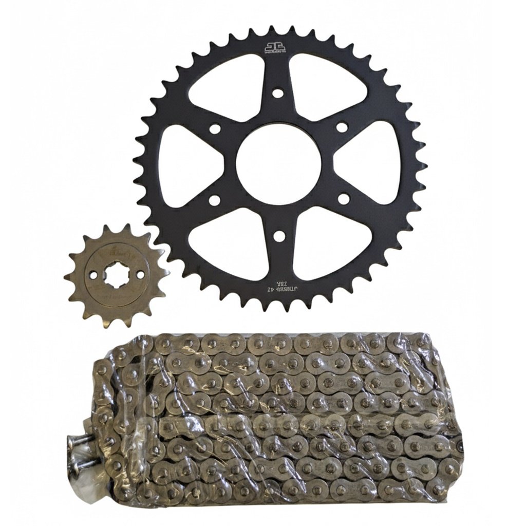 Optimizá el rendimiento de tu KTM Duke 200 con este Kit de Transmisión JT, diseñado para ofrecer máxima durabilidad, transferencia de potencia eficiente y un desempeño confiable tanto en ciudad como en ruta. Su cadena X-Ring 520X1R3 garantiza menor fricción y mayor vida útil.
