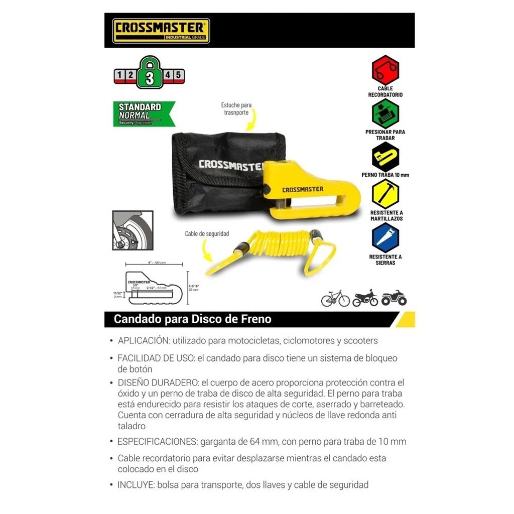 ▪️ Facilidad de uso: el candado para disco tiene un sistema de bloqueo de botón, permitiendo colocarlo de forma rápida y sencilla.