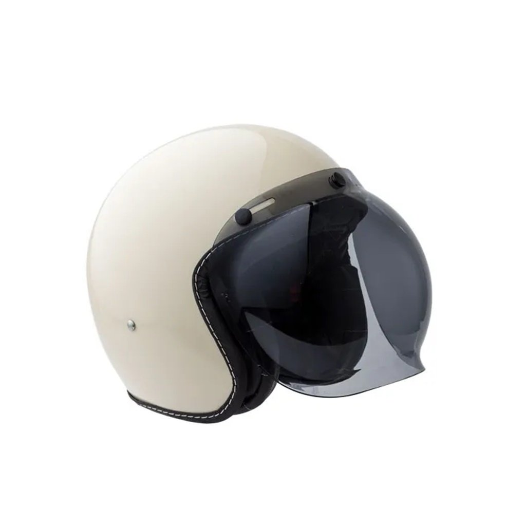 Visor burbuja negro ahumado, estilo vintage, con broches con corredera. Este visor puede ser utilizado en todos los cascos similares al modelo Hawk 721.