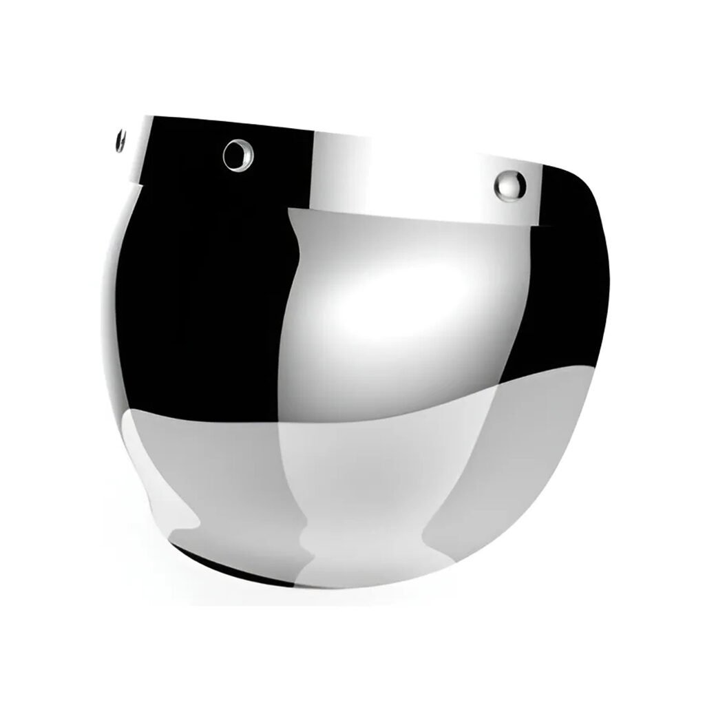 Visor burbuja espejado estilo vintage con broches y corredera. Compatible con todos los cascos similares al modelo Hawk 721. Fabricado en policarbonato, ofrece protección, ajuste seguro y fácil instalación.